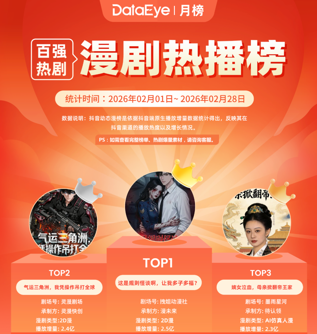 再往前看,DataEye研究院发布的《2025年漫剧数据报告》显示,2026年漫剧市场将迎来新一轮爆发,预计市场规模可达243.6亿元,涨幅达45%。